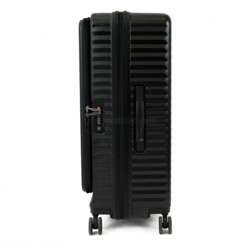 Велика містка валіза Echolac CELESTRA Black L - сучасна містка модель, що з'єднала в собі безкомпромісну якість, зручність і функциональность. Солідний зовнішній вигляд, покриття матове з легким блиском. На лицьовій частині розташована панель, що відкриває доступ до внутрішнього простору - абсолютна зручність при заповненні. Вбудований TSA замок з кодовим блокуванням. Модель виготовлена з полікарбонату, найміцнішого і ударостійкого матеріалу. Чотири подвоєні прогумовані колеса, для плавного і легкого ходу. Молния- розширювач, що створює додатковий об'єм. Три ручки - висувна і дві для переноса.