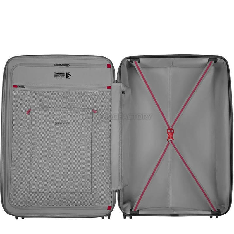 Міцна пластикова валіза великого розміру надзвичайно безпечна завдяки кодовому замку TSA і подвійній блискавці. Wenger Motion L Exp. вражає надійністю та бездоганною мобільністю. Знімна сумка для взуття всередині дозволяє легко зберігати туфлі на підборах, туфлі та кросівки.