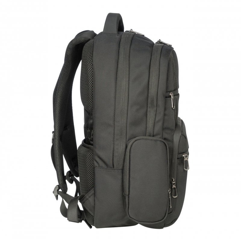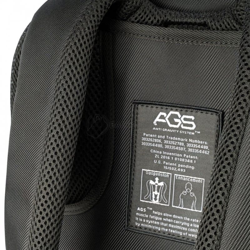 Крім того, дві бічні кишені, що розширюються, на блискавці пропонують ще більше місця для вертикальних аксесуарів. Спинка ергономічна та оснащена м'якими плечовими ременями з еластичною підвіскою AGS, та додатково ременем-фіксатором, для розміщення рюкзака на телескопічній ручці валізи, та потайною кишенею (антизвор). Знімний дощовик, захований унизу, дозволяє додатково захистити рюкзак та вміст у дощову погоду.
