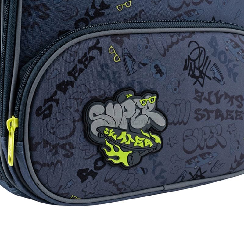 Шкільний рюкзак GoPack Education 597M-4 Super Skater (GO25-597M-4). Матеріал: Поліестер. Розмір: 38x28x15 см. Вага: 752 г. Об'єм: 12,5 л. Вік: 6 - 12 років. Стать: Для хлопчиків. Розмір (зріст): M (130 - 145 см). Рік колекції: 2025. Спинка: ортопедична. Кількість відділень: 2. Дно рюкзака: ущільнене. Ручка: м'яка ущільнена ручка, ручка-петля. Особливості: внутрішні роздільники, нагрудний ремінь, світловідбивальні елементи.