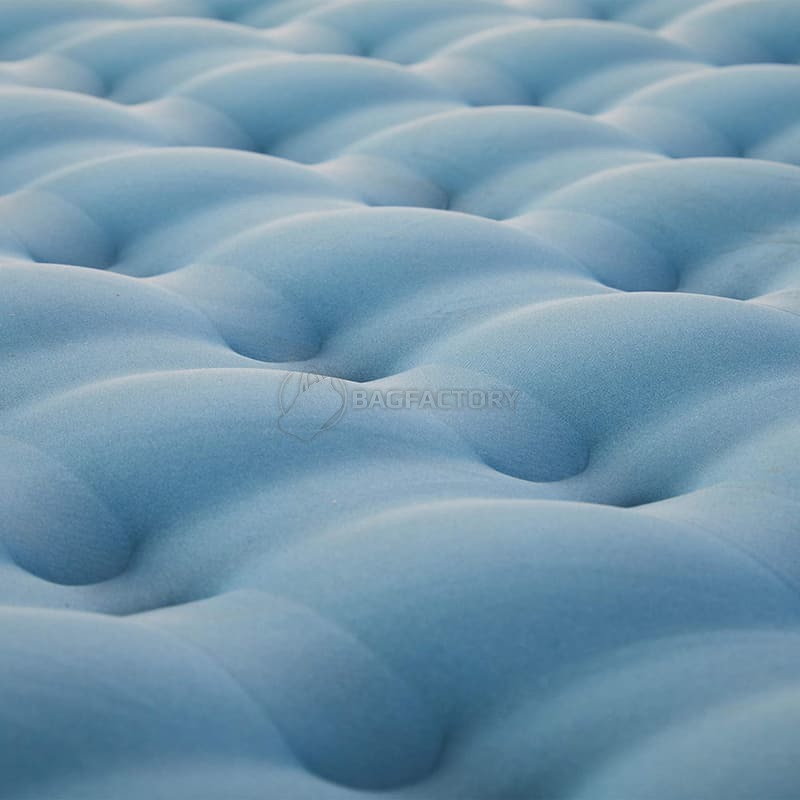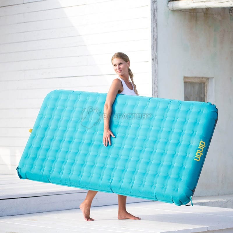 Верхня частина матраца має приємне на дотик покриття, яке не потребує додаткового простирадла. Нижня сторона виготовлена з протиковзного матеріалу – матрац не ковзає на гладкій підлозі або в наметі. Надійний двосторонній клапан типу "Boston" забезпечує легке накачування і швидке випускання повітря. Підходить до більшості стандартних насосів.